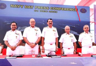 नौसेना दिवस वार्षिक प्रेस कॉन्फ्रेंस में फ्लैग ऑफिसर कमांडिंग इन चीफ पश्चिमी नौसेना कमान ने मीडिया के सदस्यों को संबोधित किया