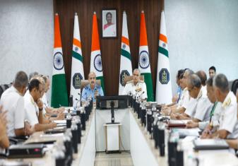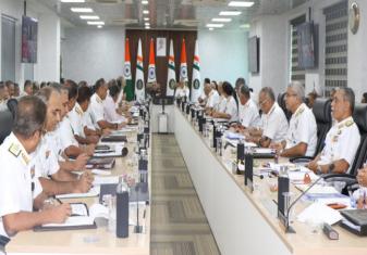जनरल मनोज पांडे सी.ओ.ए.एस. की कमांडरों के सम्मेलन के दौरान नौसेना कमांडरों के साथ वार्ता