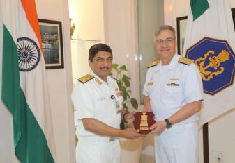 फ्लैग ऑफिसर कमांडिंग इन चीफ पश्चिमी नौसेना कमान की लेफ्टिनेंट जनरल अजय कुमार सिंह, जी.ओ.सी.आई.एन.सी., दक्षिणी कमान के साथ भेंट