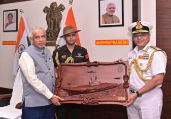 फ्लैग ऑफिसर कमांडिंग इन चीफ पूर्वी नौसेना कमान, की आंध्र प्रदेश के माननीय राज्यपाल, श्री. एस. अब्दुल नजीर से शिष्टाचार भेंट