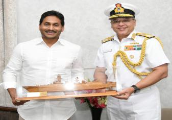 फ्लैग ऑफिसर कमांडिंग इन चीफ पूर्वी नौसेना कमान, की आंध्र प्रदेश के माननीय मुख्यमंत्री से शिष्टाचार भेंट