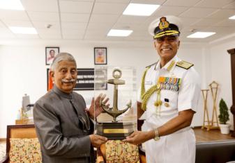 एडमिरल आर. हरि कुमार सी.एन.एस. की लद्दाख के माननीय उपराज्यपाल ब्रिगेडियर (डॉ.) बी.डी. मिश्रा (सेवानिवृत्त) से मुलाकात