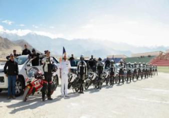 लद्दाख के माननीय उपराज्यपाल ब्रिगेडियर (डॉ.) बी.डी. मिश्रा (सेवानिवृत्त) और एडमिरल आर. हरि कुमार सी.एन.एस. ने स्पितुक फुटबॉल स्टेडियम, लेह से मोटरसाइकिल अभियान को हरी झंडी दिखाई।