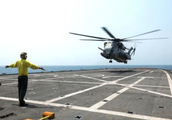 अमेरिकी मरीन सीएच-53ई "सुपर स्टैलियन" ने विशाखापत्तनम में नौसैनिक वायु स्टेशन भा.नौ.पो. देगा पर अपनी पहली लैंडिंग की।