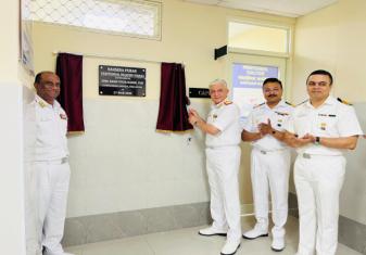 सर्जन रियर एडमिरल आर रवि, पूर्वी नौसेना कमान के कमान चिकित्सा अधिकारी ने 27 मार्च 2024 को आईएनएचएस कल्याणी में इंटरवेंशनल नेफ्रोलॉजी सेंटर का उद्घाटन किया।