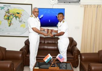 कमांडिंग ऑफिसर, रॉयल मलेशियन नौसेना के जहाज केडी लेकिर ने पूर्वी नौसेना कमान के सीएसओ(ऑप्स) से मुलाकात की