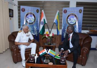 श्री सर्ज थियरी मंडौकू ओम्बेग्यू, गैबोनीज़ गणराज्य के उच्च आयोग में काउंसलर, नई दिल्ली ने रियर एडमिरल शांतनु झा, सीएसओ(ओप्स) पूर्वी नौसेना कमान से एचक्यूईएनसी में मुलाकात की