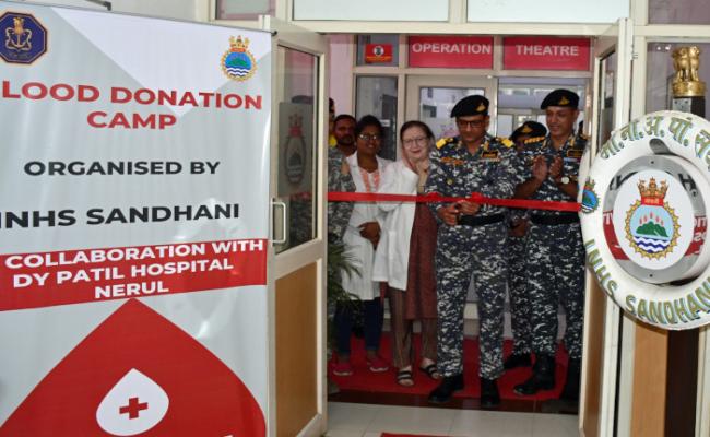 आई.एन.एच.एस. संधणी द्वारा 17 फरवरी 2023 को नवी मुंबई के ब्लड बैंक ऑफ डीवाई पाटिल अस्पताल के सहयोग से रक्तदान शिविर का आयोजन किया गया। शिविर के दौरान 86 यूनिट रक्त दान किया गया जिसका उद्घाटन वरिष्ठ अधिकारी (करंजा) ने किया। आभार व्यक्त करते हुए, डीवाई पाटिल अस्पताल के ब्लड बैंक ने आवश्यकता पड़ने पर नौसेना स्टेशन करंजा के रोगियों के लिए रक्त और रक्त उत्पादों की आपूर्ति का आश्वासन दिया।