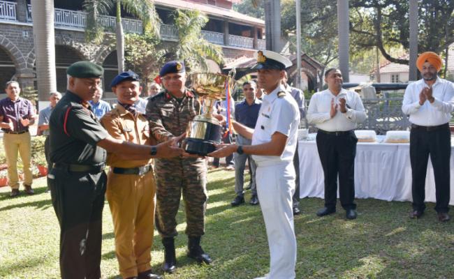 भारतीय नौसेना ने डी.एस.सी. टुकड़ी, एन.ए.डी. करंजा को मुख्यालय, दक्षिण महाराष्ट्र और गोवा उप क्षेत्र के तहत 30 डी.एस.सी. होल्डिंग इकाइयों में से अंतर सर्विस चैम्पियनशिप रोलिंग ट्रॉफी 2022-23 जीतने के लिए बधाई दी। प्रतिष्ठित ट्रॉफी के पुरस्कार के लिए बी.पी.ई.टी. / पी.पी.टी., दौड़, रोप क्लाइंबिंग, फायरिंग आदि जैसे विभिन्न प्रतिस्पर्धी कार्यक्रमों पर विचार किया गया। मेजर जनरल विक्रांत नाइक, जी.ओ.सी., मुख्यालय डी.एम. और गोवा उप क्षेत्र ने डी.एस.सी. टुकड़ी एन.ए.डी. (करंजा) को उत्कृष्ट प्रदर्शन करने के लिए सम्मानित किया।