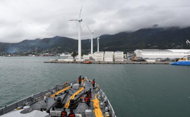 भा.नौ.पो. सुनयना ने पोर्ट विक्टोरिया, सेशेल्स में प्रवेश किया