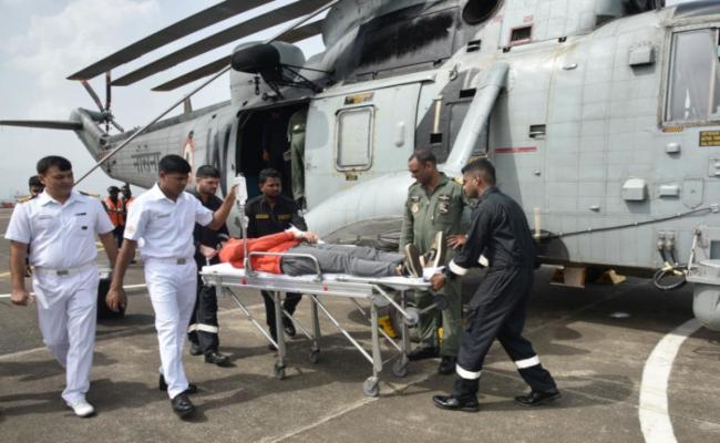 भारतीय नौसेना का एक सीकिंग हेलीकॉप्टर भा.नौ.पो. शिक्रा से 15 जुलाई, 2023 को लगभग 0900 बजे चिकित्सा निकासी के लिए लॉन्च किया गया