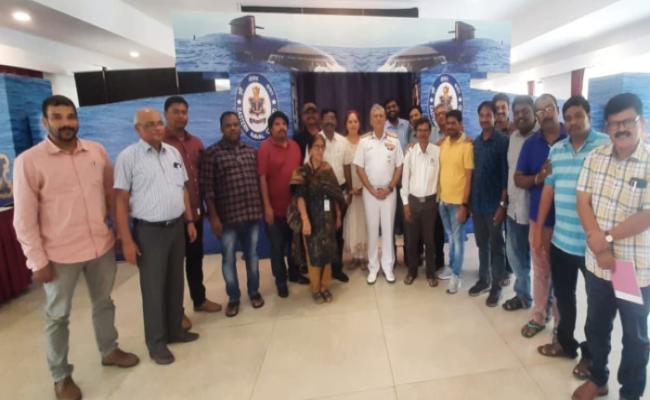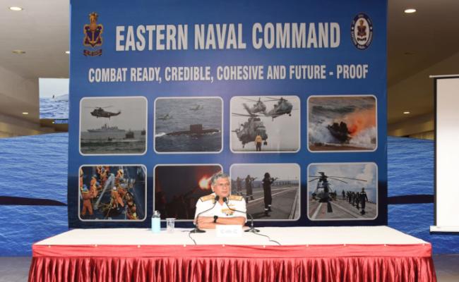 वाइस एडमिरल बिस्वजीत दासगुप्ता, फ्लैग ऑफिसर कमांडिंग इन चीफ पूर्वी नौसेना कमान ने विशाखापट्टनम में मीडिया को संबोधित किया
