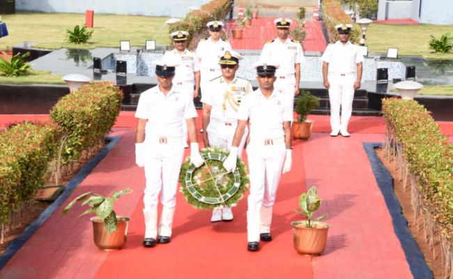 विशाखापट्टनम में आर. के बीच के विक्ट्री एट. सी. मेमोरियल में वाइस एडमिरल जी. श्रीनिवासन ने देश के लिए बलिदान देने वाले बहादुर लोगों को श्रद्धांजलि अर्पित की।
