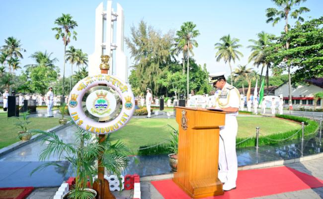 77वें स्वतंत्रता दिवस के अवसर पर कर्तव्य निभाने के दौरान देश के लिए सर्वोच्च बलिदान देने वाले सभी नौसेना कर्मियों के सम्मान में दक्षिणी नौसेना कमान वॉर मेमोरियल में वाइस एडमिरल एम.ए. हम्पिहोली फ्लैग ऑफिसर, कमांडिंग इन चीफ दक्षिणी नौसेना कमान द्वारा पुष्पांजलि अर्पित की गई। फ्लैग ऑफिसर कमांडर इन चीफ फ्लीट ने कमांडर नाथन विग्नेश्वर की कमान वाली औपचारिक परेड की समीक्षा की। इस अवसर पर, दक्षिणी नौसेना कमान को प्रदान किए गए प्रेसिडेंट्स कलर की भी परेड की गई। परेड को संबोधित करते हुए वाइस एडमिरल एम.ए. हम्पिहोली ने 77 वें स्वतंत्रता दिवस पर सभी कर्मियों और उनके परिवारों को अपनी शुभकामनाएं दीं। उन्होंने स्वतंत्रता के बाद अभूतपूर्व चुनौतियों से पार पाने वाले एक मजबूत और लचीले भारत की विकास गाथा पर प्रकाश डाला, जिसने विश्व के राष्ट्रों का सम्मान अर्जित किया है। उन्होंने सभी को राष्ट्र की संप्रभुता की रक्षा में सशस्त्र बलों की महत्वपूर्ण भूमिका की याद दिलाई। उन्होंने सभी कर्मियों को युद्ध के लिए तत्पर, विश्वसनीय, एकजुट और भविष्य प्रूफ बल बनने के लिए अपने कौशल और ज्ञान को लगातार सुधारने के लिए प्रेरित किया। फ्लैग ऑफिसर कमांडर इन चीफ फ्लीट ने दक्षिणी नौसेना कमान के कर्मियों को बधाई दी जिन्हें इस अवसर पर प्रशंसा प्राप्त हुई। इस अवसर पर नौसेना के सभी जहाजों को विभिन्न संकेतिक झंडो के साथ सजाया गया था।