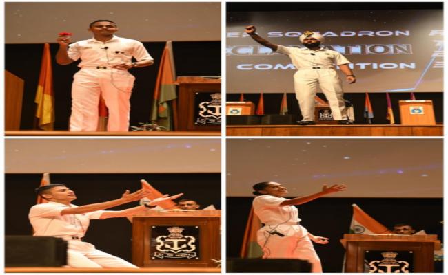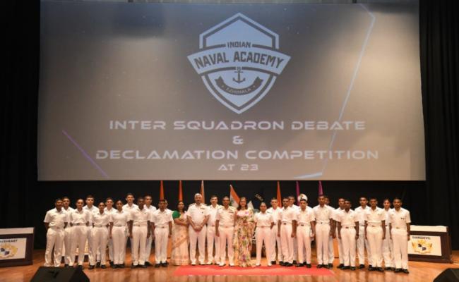 12 अगस्त, 2023 को आई.एन.ए. में ऑटम टर्म 23 के लिए अंतर स्क्वाड्रन वाद-विवाद और भाषण प्रतियोगिता का आयोजन किया गया। छह स्क्वाड्रनों, प्रत्येक में 2 कैडेटों की टीमों ने प्रतिष्ठित ट्रॉफी के लिए प्रतिस्पर्धा की। यह अनुनय, नरम कौशल और वाक्पटुता का प्रदर्शन था। इस कार्यक्रम में प्रतिभागियों के बीच उत्सुकता से प्रतिस्पर्धा हुई, जिन्होंने इस विषय पर बहस की, क्या पृथ्वी से परे जीवन एक मिथक है या वास्तविकता है? कैडेट सिद्धांत द्विवेदी (डेयरडेविल स्क्वाड्रन) और कैडेट जाह्नवी सिंह (ब्रेवहार्ट स्क्वाड्रन) को सर्वश्रेष्ठ वक्ताओं का पुरस्कार दिया गया, जिन्होंने क्रमशः प्रस्ताव के पक्ष में और विरुद्ध बोला। भाषण प्रतियोगिता के एक भाग के रूप में, भाषण देने वालों ने प्रसिद्ध हस्तियों के हास्यपूर्ण, प्रेरणादायक, विचार-विमर्श और जानकारीपूर्ण भाषण प्रस्तुत किए। कैडेट जसकीरत सिंह (फाइटर स्क्वाड्रन) और कैडेट शाश्वत त्यागी (ब्रेवहार्ट स्क्वाड्रन) को सर्वश्रेष्ठ भाषणकर्ता चुना गया। कैडेटों के शानदार वाक् कौशल ने दर्शकों को मंत्रमुग्ध कर दिया। ब्रेवहार्ट स्क्वाड्रन ने अंतर स्क्वाड्रन वाद विवाद प्रतियोगिता के साथ-साथ भाषण प्रतियोगिता भी जीती। आई.एन.ए. के कमांडेंट वाइस एडमिरल पुनीत के बहल ने विजेता स्क्वाड्रन को व्यक्तिगत पुरस्कार और ट्रॉफी प्रदान की।