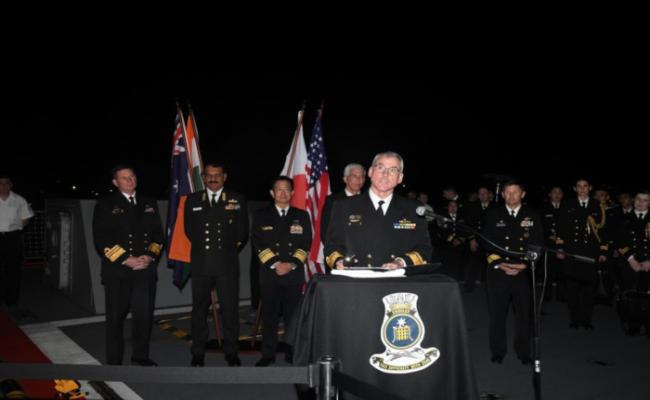 भा.नौ.पो. सहयाद्री और भा.नौ.पो. कोलकाता यू.एस. नौसेना (यू.एस.एन.), जापान मैरीटाइम सेल्फ डिफेंस फोर्स (जे.एम.एस.डी.एफ.) और रॉयल ऑस्ट्रेलियन नौसेना (आर.ए.एन.) के साथ 27वें अभ्यास मालाबार में भाग लेने के लिए सिडनी में है। मालाबार अभ्यास 11 से 21 अगस्त 2023 तक निर्धारित है। मालाबार का उद्घाटन समारोह 11 अगस्त 2023 को एच.एम.ए.एस. चायल्स पर आयोजित किया गया। रियर एडमिरल क्रिस्टोफर स्मिथ, कमांडर ऑस्ट्रेलियाई बेड़ा (COMAUSFLT) ने उद्घाटन भाषण दिया, जिसने आधिकारिक तौर पर मालाबार अभ्यास के प्रारंभ को चिह्नित किया। कार्यक्रम में चारों देशों के राजनयिकों, वरिष्ठ नौसेना अधिकारियों, फ्लीट कमांडरों, कमांडिंग ऑफीसर्स, अधिकारियों और नाविकों ने भाग लिया। भारतीय नौसेना के प्रतिनिधिमंडल के प्रमुख के रूप में वाइस एडमिरल दिनेश के त्रिपाठी, फ्लैग ऑफिसर कमांडिंग इन चीफ, पश्चिमी नौसेना कमान ने इस समारोह में भाग लिया। उद्घाटन समारोह में आदिवासी समुदाय द्वारा पारंपरिक अनुष्ठान, आर.ए.एन. बैंड और ऑस्ट्रेलियाई फेडरेशन गार्ड द्वारा एक बैंड प्रदर्शन भी शामिल था और इसका समापन एक औपचारिक सूर्यास्त समारोह के साथ हुआ।