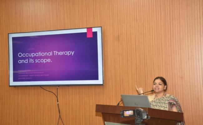 डॉ. करुणा नडकर्णी, एच.ओ.डी. ऑक्यूपेशनल थैरेपी, के.ई.एम. अस्पताल ने 29 अगस्त 2023 को आई.एन.एच.एस. अस्विनी में "स्कोप ऑफ ऑक्यूपेशनल थैरेपी विद फोकस ऑन अर्ली इंटरवेंशन" विषय पर व्याख्यान दिया। इस व्याख्यान की अध्यक्षता सर्जन रियर एडमिरल श्री. विवेक हांडे, कमांडिंग ऑफिसर ने की। डॉ. करुणा की अध्यक्षता वाली एक टीम ने आई.एन.एच.एस. अस्विनी में अर्ली इंटरवेंशन सेंटर ई.आई.सी. चेतना का भी दौरा किया और उन्हें दी जा रही सेवाओं, प्रोटोकॉल का पालन करने और एस.ओ.पी. के बारे में संक्षिप्त जानकारी दी। टीम ने विभिन्न मूल्यांकन और थेरेपी प्रोटोकॉल के साथ-साथ ई.आई.सी. के कामकाज को मान्यता दी। उन्होंने स्थापना के बाद से पिछले दो वर्षों में ई.आई.सी. द्वारा उठाए गए कदमों की सराहना की। प्रदान किए गए इनपुट ई.आई.सी. और पूरी नौसेना में प्रोटोकॉल को मानकीकृत करने में एक लंबा रास्ता तय करेंगे।