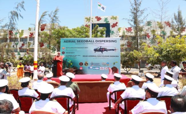 भा.नौ.पो. परुंडु, तमिलनाडु वन विभाग के रामनाथपुरम वन प्रभाग और माता अमृतानंदमयी मठ के बीच एक संयुक्त पहल में, भा.नौ.पो. परुंडु में 9 सितंबर 2023 को एरियल सीडबॉल डिस्पर्सिंग अभियान का उद्घाटन किया गया। जलवायु, पर्यावरण और नेट जीरो लक्ष्यों पर ध्यान केंद्रित करने वाले सस्टनेबल एंड रेसिलेंट कम्युनिटी (एस.आर.सी.) पर सी.20वर्किंगग्रुप द्वारा आयोजित ग्लोबल सीडबॉल अभियान के अनुरूप आयोजित यह कार्यक्रम, जिले में 4,00,000 बीजबॉल के सफल हवाई प्रसार को प्राप्त करेगा। रियर एडमिरल आर.के. ढींगरा, एफ.टी.एन.ए. ने माता अमृतानंदमयी मठ के ट्रस्टी स्वामी रामकृष्णानंद पुरी के साथ इस कार्यक्रम का उद्घाटन किया। मानसून अवधि के दौरान रामनाथपुरम जिले के भीतर 3715.765 हेक्टेयर के विशाल विस्तार में सीडबॉल बिखराव होने की उम्मीद है।