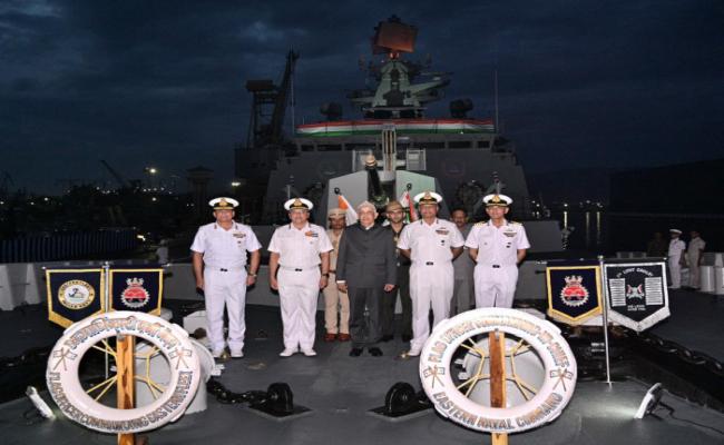 आंध्र प्रदेश के माननीय राज्यपाल श्री. एस. अब्दुल नजीर ने 11 सितंबर 2023 को विशाखापट्टनम में पूर्वी नौसेना कमान का दौरा किया। इस अवसर पर वाइस एडमिरल राजेश पेंधरकर फ्लैग ऑफिसर कमांडिंग इन चीफ पूर्वी नौसेना कमान ने उनका स्वागत किया और उन्हें एक औपचारिक गार्ड ऑफ ऑनर प्रदान किया। माननीय राज्यपाल ने पूर्वी बेड़े के स्वदेश निर्मित निर्देशित मिसाइल स्टील्थ फ्रिगेट भा.नौ.पो. शिवालिक का दौरा किया, जिसके दौरान उन्हें जहाज और पूर्वी बेड़े की भूमिका और क्षमताओं के बारे में बताया गया। माननीय राज्यपाल को बोट द्वारा विशाखापट्टनम बंदरगाह का दौरा भी कराया गया और नौसेना डॉकयार्ड में सुविधाओं के बारे में जानकारी दी गई।