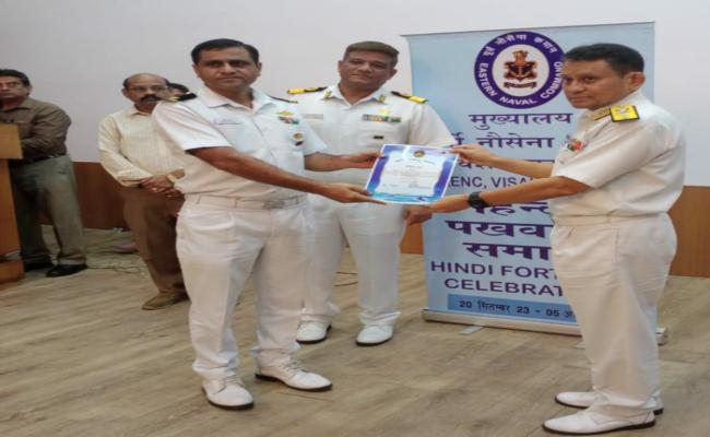 पूर्वी नौसेना कमान 20 सितंबर से 5 अक्टूबर 2023 तक हिंदी पखवाड़ा मना रहा है। रियर एडमिरल संदीप प्रधान, सी.एस.ओ. (पी. और ए.) 20 सितंबर 2023 को पूर्वी नौसेना कमान के स्वर्ण ज्योति में आयोजित उद्घाटन समारोह के मुख्य अतिथि थे, जिसमें पूर्वी नौसेना कमान के विभिन्न जहाजों और प्रतिष्ठानों के सेवा और नागरिक कर्मियों ने भाग लिया। इस पखवाड़े में 5 अक्टूबर, 2023 को इन हाउस हिंदी पत्रिका पूर्वी वाणी के 29वें संस्करण के विमोचन सहित विभिन्न हिंदी प्रतियोगिताओं और कार्यशालाओं का आयोजन किया जाएगा। इस अवसर पर रियर एडमिरल संदीप प्रधान ने आधिकारिक कार्यों में हिंदी के उपयोग के महत्व पर जोर दिया और उन्होंने हिंदी कार्यान्वयन की दिशा में कमान के कर्मियों द्वारा किए गए प्रयासों की सराहना की। उन्होंने पूर्वी नौसेना कमान में हिन्दी और हिन्दी से संबंधित कार्यों के कार्यान्वयन की दिशा में अपने प्रयासों और सही कार्यो को जारी रखने के निर्देश दिए।