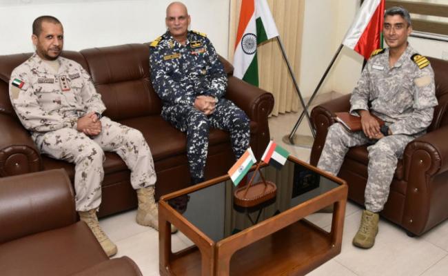 यू.ए.ई. के एक प्रतिनिधिमंडल ने 14 से 20 सितंबर, 2023 तक पेशेवर वार्ता के लिए विशाखापट्टनम में पूर्वी नौसेना कमान का दौरा किया। प्रतिनिधिमंडल के प्रमुख कर्नल स्टाफ हामिद खामिस खलीफा बुसाद अल्मरी ने रियर एडमिरल मनीष शर्मा, सी.एस.ओ. (ओ. पी. एस.) से मुलाकात की और आपसी हित के मामलों पर चर्चा की।प्रतिनिधिमंडल ने भारतीय नौसेना के अपने समकक्षों के साथ बातचीत की और उन्हें नौसेना युद्ध के विभिन्न पहलुओं के बारे में भी जानकारी दी गई। यह बातचीत भारतीय नौसेना और यू.ए.ई. के सशस्त्र बलों के बीच द्विपक्षीय सहयोग और संबंधों को बढ़ाने का एक और प्रमाण है।
