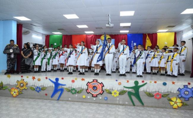 "नेता पैदा नहीं होते, बनाए जाते हैं" नेवी चिल्ड्रन स्कूल, विशाखापट्टनम ने 29 सितंबर 2023 को अलंकरण समारोह आयोजित किया। शिक्षकों, कर्मचारियों और अभिभावकों की उपस्थिति में मुख्य अतिथि वाइस एडमिरल समीर सक्सेना सी.ओ.एस., पूर्वी नौसेना कमान और अध्यक्ष एन.सी.एस. विजाग द्वारा नई नियुक्तियों को बैज प्रदान किए गए।
