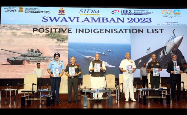 रक्षा और नवाचार में आत्मनिर्भरता को बढ़ावा देने के लिए, 4 सितंबर 2023 को नौसेना नवाचार और स्वदेशीकरण संगठन एन.आई.आई.ओ. की संगोष्ठी ‘स्वावलंबन 2.0’ के पूर्ण सत्र में रक्षा मंत्री श्री. राजनाथ सिंह द्वारा कई घोषणाएं की गईं। रक्षा मंत्री राजनाथ सिंह ने डी.एम.ए. की 98 मदों वाली 5 वीं पॉजिटिव स्वदेशीकरण सूची जारी की। इस सूची में उच्च जटिल प्रणाली, सेंसर, हथियार और गोला-बारूद शामिल हैं। डिस्क 10 और डिस्क 10 प्राइम के तहत 76 दावों और इंडस X के तहत दो दावों का भी शुभारंभ किया गया।