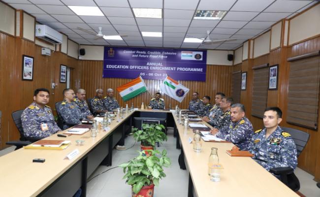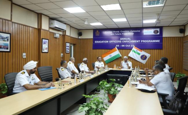 भारतीय नौसेना ने 5 और 6 अक्टूबर 2023 को नई दिल्ली में अपने वार्षिक शिक्षा अधिकारी संवर्धन कार्यक्रम 2023 का आयोजन किया। इस कार्यक्रम में रियर एडमिरल राजवीर सिंह, प्रिंसिपल आई.एन.ए., कमोडोर जी. रामबाबू, कमोडोर (नौसेना शिक्षा) और आई.एन. की शिक्षा शाखा के अन्य वरिष्ठ अधिकारियों ने भाग लिया। इस कार्यक्रम का मुख्य उद्देश्य विभिन्न नीतिगत पहलों और शाखा से संबंधित समकालीन मुद्दों पर चर्चा करना और आई.एन. की वृद्धि और विकास की दिशा में इसके कार्यात्मक प्रभाव को और बेहतर बनाना था। इस कार्यक्रम के हिस्से के रूप में, राष्ट्रीय शैक्षिक योजना और प्रशासन संस्थान एन.आई.ई.पी.ए. और आई.जी.एन.ओ.यू. के अतिथि वक्ताओं को उच्च शिक्षा सहित शिक्षा के क्षेत्र में नवीनतम विकास पर व्याख्यान देने के लिए आमंत्रित किया गया था। इसके अलावा, नौसेना मुख्यालय में सहयोगी सेवाओं, अन्य शैक्षिक निकायों और अन्य निदेशालयों के वक्ताओं ने प्रासंगिक और समकालीन विषयों पर व्याख्यान दिए। अपने समापन संबोधन में सी.ओ.पी. एवं सी.पी.एस. के प्रमुख वाइस एडमिरल के. स्वामीनाथन ने डी.एन.ई. द्वारा हाल ही में की गई पहलों और नौसेना कर्मियों की शिक्षा, प्रशिक्षण और कल्याण के क्षेत्र में शाखा की भूमिका की सराहना की। उन्होंने प्रतिनिधियों से आग्रह किया कि वे आई.एन. की उभरती भूमिका के अनुरूप शाखा को ढालने की दिशा में प्रभावी नेतृत्व प्रदान करना जारी रखें।