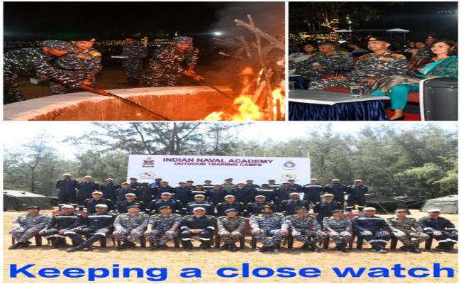 आई.एन.ए. पाठ्यक्रम के दूसरे कार्यकाल के लिए प्रशिक्षण शिविर बाराकुडा और नौसेना ओरिएंटेशन पाठ्यक्रम एन.ओ.सी. के लिए रूकी का आयोजन आई.एन.ए. में 4 से 7 अक्टूबर 2023 तक किया गया। इस चुनौतीपूर्ण शिविर में 7 अंतर्राष्ट्रीय प्रशिक्षुओं सहित कुल 123 प्रशिक्षुओं ने भाग लिया। शिविरों का उद्देश्य कैडेटों की शारीरिक सहनशक्ति और मानसिक शक्ति का परीक्षण करते हुए दल भावना, सौहार्द और नेतृत्व कौशल विकसित करना है। शिविर की गतिविधियों में सहन शक्ति दौड़, छोटे हथियारों की गोलीबारी, टेंट पिचिंग, राफ्ट्स और पंटिंग का निर्माण, बाधा कोर्स, व्हेलर पुलिंग और अन्य नाविक विकास शामिल थे। अंतिम दिन, कैडेटों का अत्यधिक चुनौतीपूर्ण क्वाड्राथलॉन परीक्षण किया गया, जिसमें फुल बैटल गियर में 10 किमी दौड़, 50 मीटर तैराकी, बाधा कोर्स और हथियार फायरिंग शामिल थी। अचीवर स्क्वाड्रन और डेयरडेविल स्क्वाड्रन ने ऑटम टर्म 2023 में क्रमशः बाराकुडा और रूकी कैंप के लिए बैनर जीता। मॉरीशस नेशनल कोस्ट गार्ड की कैडेट जुगमाह प्रिसीता ने प्रतिष्ठित आई.एन.ए. शिविरों में भाग लेने वाली पहली अंतर्राष्ट्रीय महिला प्रशिक्षु के रूप में एक ऐतिहासिक मील का पत्थर बनाया। वाइस एडमिरल पुनीत के बहल, कमांडेंट, आई.एन.ए. ने कैम्प फायर के दौरान स्क्वाड्रन जीतने के लिए कैंप बैनर और ट्राफियां प्रदान की और सभी प्रतिभागियों को ऐतिहासिक प्रशिक्षण गतिविधि को सफलतापूर्वक पूरा करने के लिए बधाई दी।