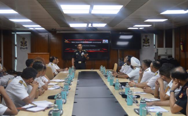 नौसेना मुख्यालय में तैनात अधिकारियों के लिए 16 अक्टूबर, 2023 को सिकंदराबाद के कॉलेज ऑफ डिफेंस मैनेजमेंट के फैकल्टी ऑफ डिसीजन साइंसेज से डायरेक्टिंग स्टाफ द्वारा डिसीजन सपोर्ट प्रणाली पर एक कार्यशाला आयोजित की गई। इस कार्यशाला का उद्देश्य नौसेना ऑपरेशन, वित्तीय नियोजन और अधिग्रहण प्रक्रियाओं में बहु-मानदंड निर्णय लेने में सक्षम बनाने के लिए डिसीजन सपोर्ट उपकरणों के साथ भारतीय नौसेना के मध्य स्तर के अधिकारियों को परिचित करना था।