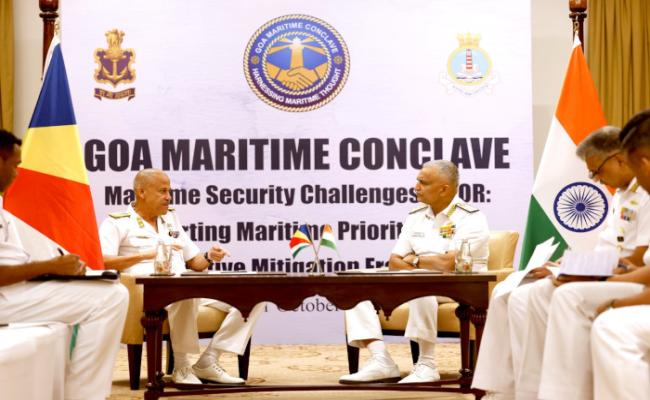एडमिरल आर. हरि कुमार, सी.एन.एस. ने जी.एम.सी. 2023 से इतर ब्रिगेडियर माइकल एन्सेल्म मार्क रोसेट, रक्षा प्रमुख, सेशेल्स रक्षा बल के साथ द्विपक्षीय वार्ता की। उन्होंने आई.ओ.आर. में समुद्री सुरक्षा सहित पारस्परिक हितों के मुद्दों और द्विपक्षीय रक्षा सहयोग को और मजबूत करने के उपायों पर चर्चा की।