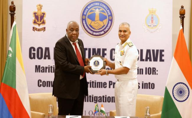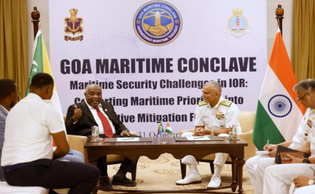एडमिरल आर. हरि कुमार, सी.एन.एस. ने जी.एम.सी. 2023 के इतर महामहिम मोहम्मद अली युसूफा, रक्षा प्रभारी प्रतिनिधि, कोमोरोस संघ की प्रेसीडेंसी के साथ द्विपक्षीय चर्चा की। द्विपक्षीय रक्षा संबंधों को बढ़ाने के लिए अवसरों पर चर्चा; और क्षमता निर्माण और क्षमता वृद्धि के माध्यम से समुद्री सहयोग को आगे बढ़ाने के प्रमुख पहलुओं पर चर्चा हुई। बैठक में कोमोरियन तटरक्षक बल के कमांडेंट अब्दोलवाहाब अली अजिरी भी शामिल हुए।