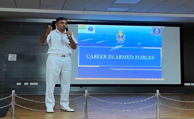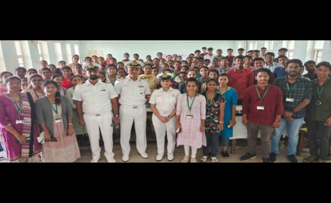 बी.टेक (नेवल आर्किटेक्चर) के छात्रों को एन.एच.क्यू./डी.एम.पी.आर. द्वारा विज्ञापित एस.एस.सी. (एन.ए.) प्रवेश के माध्यम से भारतीय नौसेना में शामिल होने के लिए प्रोत्साहित करने के लिए, एन.एच.क्यू./डी.एन.ए. की एच.आर. टीम कैप्टन मनोज कुमार {कैप्टन (एन.ए.)} और लेफ्टिनेंट कमांडर प्रेमा शर्मा { लेफ्टिनेंट कमांडर (एन.ए.)एच.आर.} ने अक्टूबर 2023 में विशाखापट्टनम में आंध्र विश्वविद्यालय और इंडियन मैरीटाइम यूनिवर्सिटी, कोच्चि में सी.यू.एस.ए.टी. और एस.एन.सी.जी.ई. कदयिरुप्पु में आउटरीच कार्यक्रम आयोजित किया। सत्र शानदार रूप से सफल रहे, जिसमें नौसेना अधिकारियों द्वारा साझा की गई जानकारीपूर्ण वार्ता और प्रत्यक्ष अनुभव के माध्यम से ज्ञान और विचारों के गतिशील आदान-प्रदान द्वारा महत्वाकांक्षी युवा प्रतिभाओं और अनुभवी नौसेना पेशेवरों को मिलाया गया। भारतीय नौसेना को उत्सुकता से उम्मीद है कि ये होनहार युवा उसकी विरासत का अभिन्न अंग बनेंगे।