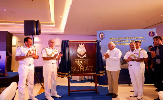 भारतीय नौसेना के नवीनतम, निर्माणाधीन, निर्देशित मिसाइल विध्वंसक सूरत के क्रेस्ट का अनावरण गुजरात के सी.एम. श्री. भूपेंद्र पटेल ने सूरत शहर में एक जीवंत समारोह में सी.एन.एस. एडमिरल आर. हरि कुमार तथा राज्य सरकार और भारतीय नौसेना के वरिष्ठ गणमान्य व्यक्तियों और अधिकारियों की उपस्थिति में किया। क्रेस्ट में खंभट की खाड़ी के दक्षिणी प्रवेश द्वार पर स्थित हजीरा (सूरत) के प्रसिद्ध लाइटहाउस को दर्शाया गया है। 1836 में निर्मित यह प्रकाशस्तंभ भारत के प्रथम प्रकाशस्तंभों में से एक था। क्रेस्ट पर एशियाई शेर, जो गुजरात का राजकीय पशु भी है, जहाजों की महिमा और ताकत का प्रतीक है। नौसेना युद्ध प्रौद्योगिकी और युद्ध क्षमताओं में नवीनतम विकास से लैस, युद्धपोत सूरत समुद्री सुरक्षा और राष्ट्रीय रक्षा के लिए नौसेना की प्रतिबद्धता का एक शक्तिशाली अवतार है। यह क्रेस्ट पर चित्रित लहरदार समुद्र द्वारा अच्छी तरह से दर्शाया गया है। भारतीय नौसेना के बेड़े में शामिल होने की दहलीज पर, सूरत एक दुर्जेय प्रहरी के रूप में सेवा करने, राष्ट्र की समुद्री सीमाओं की रक्षा करने और क्षेत्र में अपने रणनीतिक हितों को बनाए रखने का वादा करता है। अपने समृद्ध समुद्री इतिहास और जहाज निर्माण विरासत के लिए प्रसिद्ध, जीवंत शहर सूरत के नाम पर, युद्धपोत सूरत भी अपने नाम के अनुसार उद्यमशील और आत्मनिर्भर भावना का प्रतीक है। स्वदेशी रूप से डिजाइन और निर्मित परियोजना 15 बी. (विशाखापट्टनम श्रेणी) विध्वंसक का चौथा जहाज, सूरत नौसेना प्रौद्योगिकी और क्षमताओं में एक उल्लेखनीय वृद्धि का प्रतिनिधित्व करता है। जहाज के निर्माण में आधुनिक ब्लॉक निर्माण पद्धति का उपयोग किया गया है, जिसमें मुंबई में एम.डी.एल. में एकीकृत होने से पहले जहाज के हल को कई भौगोलिक स्थानों पर परिश्रमपूर्वक जोड़ा गया है। जटिल परिशुद्धता और इंजीनियरिंग उत्कृष्टता को दिखाते हुए, यह पद्धति भारत की जहाज निर्माण क्षमता के बढ़ते शोधन को रेखांकित करती है। सूरत की अगले वर्ष सक्रिय सेवा में शामिल होने की उम्मीद है और उसका कुशल क्रू आने वाले दशकों में गर्व से देश की सेवा करेगा। सी.एम. और सी.एन.एस. के अलावा, जहाज के क्रेस्ट अनावरण के जीवंत समारोह में वाइस एडमिरल दिनेश कुमार त्रिपाठी, फ्लैग ऑफिसर कमांडिंग पश्चिमी नौसेना कमान, रियर एडमिरल अनिल जग्गी, फ्लैग ऑफिसर कमांडिंग गुजरात नौसेना क्षेत्र, भारतीय नौसेना के वरिष्ठ अधिकारी और सूरत शहर के राजनीतिक और वाणिज्यिक क्षेत्रों से कई गणमान्य नागरिकों ने भाग लिया।