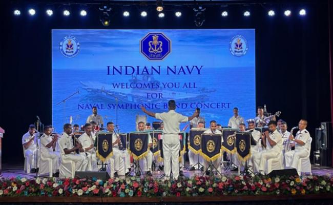 नौसेना दिवस 2023 की गतिविधियों के हिस्से के रूप में, दक्षिणी नौसेना कमान के भारतीय नौसेना बैंड ने 6 नवंबर 2023 को टैगोर ऑडिटोरियम, तिरुवनंतपुरम में एक बैंड संगीत कार्यक्रम की मेजबानी की। बैंड ने देशभक्ति गीतों और लोकप्रिय धुनों के साथ दर्शकों को मंत्रमुग्ध कर दिया, जिसमें पूर्व सैनिक, एनसीसी कैडेट और स्थानीय स्कूलों और कॉलेजों के छात्र शामिल थे। नौसेना के संगीतकारों ने विभिन्न वाद्ययंत्रों और शैलियों के साथ अपनी प्रवीणता और विविधता का प्रदर्शन किया, जिससे एक जीवंत और देशभक्ति का माहौल बन गया। इस शानदार प्रदर्शन की 900 से अधिक लोगों ने सराहना की, जिन्होंने एकता और देशभक्ति की भावना को बढ़ावा देते हुए इस संगीत कार्यक्रम में भाग लिया।