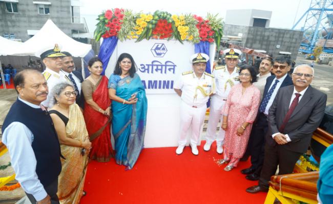 भारतीय नौसेना के लिए मैसर्स जी.आर.एस.ई. द्वारा निर्मित 08 x ए.एस.डब्ल्यू. शैलो वाटर क्राफ्ट एस.डब्ल्यू.सी. परियोजना के 4 वें जहाज अमिनी को 16 नवंबर 2023 को मैसर्स एल. एंड. टी., कट्टुपल्ली में लॉन्च किया गया। उद्घाटन समारोह की अध्यक्षता वाइस एडमिरल संदीप नैथानी, सी.ओ.एम. ने की। समुद्री परंपरा को ध्यान में रखते हुए श्रीमती मंजू नैथानी ने अथर्व वेद का आह्वान करते हुए इस जहाज की लॉन्चिंग की। लक्षद्वीप के अमिनी द्वीप को दिए गए रणनीतिक समुद्री महत्व को दर्शाने के लिए इस जहाज का नाम अमिनी रखा गया है। आठ ए.एस.डब्ल्यू. एस.डब्ल्यू.सी. जहाजों के निर्माण के लिए 29 अप्रैल 2019 को एम.ओ.डी. और गार्डन रीच शिपबिल्डर्स एंड इंजीनियर्स, कोलकाता के बीच अनुबंध पर हस्ताक्षर किए गए थे। निर्माण रणनीति के अनुसार, जी.आर.एस.ई., कोलकाता में चार जहाजों का निर्माण किया जा रहा है और बाकी चार जहाजों को मेसर्स एल.एंड.टी. शिपबिल्डिंग, कट्टुपल्ली में हल और पार्ट आउटफिटिंग के लिए उप-अनुबंधित किया गया है। अर्नाला श्रेणी के जहाज भारतीय नौसेना के वर्तमान में कार्यरत अभय श्रेणी के ए.एस.डब्ल्यू. कार्वेट्स की जगह लेंगे और इन्हें कम तीव्रता वाले समुद्री अभियान (एल.आई.एम.ओ.) और माइन लेइंग ऑपरेशंस सहित तटीय जल में पनडुब्बी रोधी अभियान चलाने के लिए डिज़ाइन किया गया है।ए.एस.डब्ल्यू. एस.डब्ल्यू.सी. जहाजों की लंबाई 77.6 मीटर, चौड़ाई 10.5 मीटर, ड्राफ्ट 2.7 मीटर, विस्थापन 900 टन, अधिकतम गति 25 समुद्री मील और क्षमता लगभग 1800 एन.एम. है। इस वर्ग का तीसरा जहाज 13 जून 2023 को मेसर्स एल. एंड टी., कट्टुपल्ली में लॉन्च किया गया था। एक वर्ष के भीतर एक ही वर्ग के चार जहाजों की लॉन्चिंग आत्मनिर्भर भारत की ओर स्वदेशी जहाज निर्माण में हमारी प्रगति और प्रतिबद्धता को उजागर करती है। इस परियोजना के पहले जहाज को 2024 की शुरुआत में सुपुर्द करने की योजना है। ए.एस.डब्ल्यू. एस.डब्ल्यू.सी. जहाजों में 80 प्रतिशत से अधिक स्वदेशी सामग्री होगी, जिससे यह सुनिश्चित होगा कि भारतीय विनिर्माण इकाइयों द्वारा बड़े पैमाने पर रक्षा उत्पादन का निष्पादन किया जाए, जिस कारण देश के भीतर रोजगार और क्षमता में वृद्धि होगी।