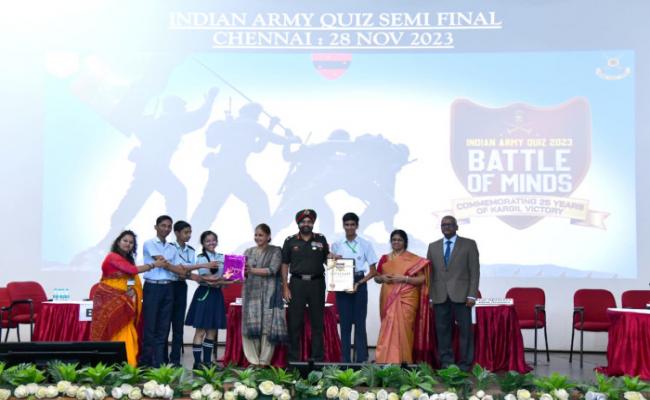 एन.सी.एस., मुंबई की टीम जिसमें मिस रिया, के. ए. मास्टर कार्तिक किशोर, मास्टर आरोह रोहित पिशरोडी और मास्टर वरुण राणा शामिल थे, भारतीय सेना प्रश्नोत्तरी 2023 - बैटल ऑफ माइंड्स के राष्ट्रीय सेमीफाइनल में 18 टीमों में से विजेता बनकर उभरी जिसका उद्देश्य कारगिल विजय के 25 वर्ष पूर्ण होने का जश्न मनाना है। सेमीफाइनल 28 नवंबर 2023 को ओ.टी.ए. चेन्नई में आयोजित किए गए थे और फाइनल 3 दिसंबर 2023 को नई दिल्ली के सैम मानेकशॉ सेंटर में निर्धारित हैं। लेफ्टिनेंट जनरल करणबीर सिंह बराड़, जी.ओ.सी., दक्षिण भारत क्षेत्र ने विजेताओं को सम्मानित किया।