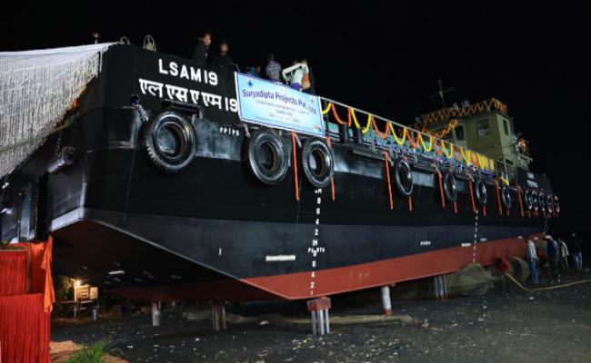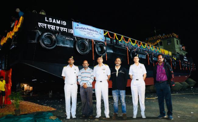 भारतीय नौसेना के लिए एम.एस.एम.ई. शिपयार्ड, मेसर्स सूर्यदीप्त प्रोजेक्ट्स प्राइवेट लिमिटेड, ठाणे द्वारा निर्मित 11 X ए.सी.टी.सी.एम. बार्ज परियोजना के 5वें बार्ज, गोला बारूद सह टॉरपीडो सह मिसाइल बार्ज, एल.एस.ए.एम. 19 (यार्ड 129) की लॉन्चिंग 24 जनवरी 2024 को मेसर्स सूर्यदीप्त प्रोजेक्ट प्राइवेट लिमिटेड (मेसर्स एस.पी.पी.एल. की लॉन्च साइट) पर की गई। शुभारंभ समारोह की अध्यक्षता कमोडोर वी. प्रवीण, ए.डब्ल्यू.पी.एस. मुम्बई ने की। इन नौकाओं को इन्डियन रजिस्टर ऑफ शिपिंग के प्रासंगिक नौसेना नियमों और विनियमन के तहत स्वदेश में डिजाइन और निर्मित किया गया है, मॉडल परीक्षण एनएसटीएल, विशाखापट्टनम में किया गया और ये भारतीय नौसेना जहाजों को जे.टी. के साथ-साथ बाहरी बंदरगाहों पर रसद/गोला-बारूद के परिवहन, लदान और उतरान की सुविधा प्रदान करके भारतीय नौसेना की ऑपरेशनल प्रतिबद्धताओं को गति प्रदान करेंगे। ये बार्ज भारत सरकार की मेक इन इंडिया पहल के गौरवशाली ध्वज वाहक हैं।