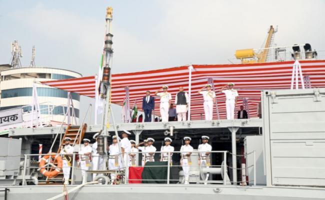रक्षा मंत्री श्री राजनाथ सिंह आईएनएस संधायक के कमीशनिंग समारोह में भाग ले रहे हैं