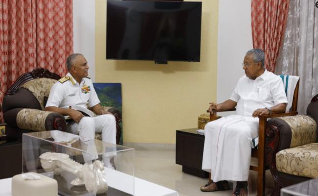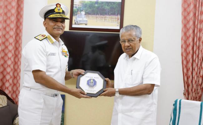 एडमिरल आर हरि कुमार सीएनएस ने माननीय केरल के मुख्यमंत्री श्री पिनारायी विजयन से मुलाकात की। समुद्री जागरूकता, पोत निर्माण, सुरक्षा और राष्ट्र निर्माण की ओर योगदान देने वाले अन्य पहलुओं को बढ़ावा देने पर महत्वपूर्ण चर्चाएँ हुईं।