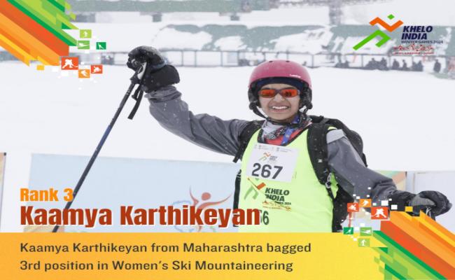 भारतीय नौसेना के लिए गर्व का क्षण था जब कमांडर कार्तिकेयन की बेटी, सुश्री काम्या कार्तिकेयन ने खेलो इंडिया विंटर गेम्स 2024 में दो पदक जीते, जिसमें एक स्वर्ण पदक शामिल है, जो भारत में आयोजित खेलोइंडिया का फ्लैगशिप इवेंट है, जो गुलमर्ग में आयोजित किया गया था। 16 वर्षीय, एनसीएस, मुंबई की कक्षा XI की छात्रा ने स्कीमाउंटेनीरिंग की वर्टिकल और स्प्रिंट इवेंट्स में एक स्वर्ण और एक कांस्य पदक जीता। उनकी जीत विशेष रूप से उल्लेखनीय है क्योंकि यह विंटर गेम्स के सीनियर नेशनल स्तर पर उनकी पहली उपस्थिति थी।