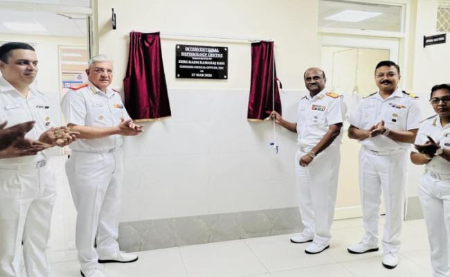 सर्जन रियर एडमिरल आर रवि, पूर्वी नौसेना कमान के कमान चिकित्सा अधिकारी ने 27 मार्च 2024 को आईएनएचएस कल्याणी में इंटरवेंशनल नेफ्रोलॉजी सेंटर का उद्घाटन किया।
