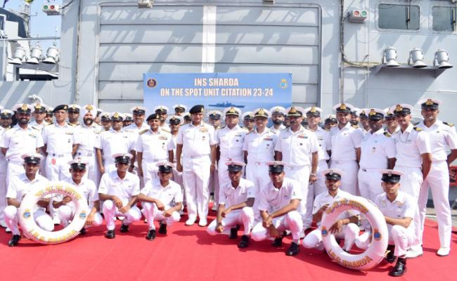 दक्षिणी नौसेना कमान (एसएनसी), कोच्चि के अपने दौरे के दौरान, एडमिरल आर हरि कुमार, नौसेना स्टाफ के प्रमुख (सीएनएस) ने समुद्री डकैती ऑपरेशंस के सफल संचालन के लिए भा.नौ.पो. शारदा को 'ऑन द स्पॉट यूनिट सम्मान' प्रदान किया। जहाज सोमालिया के पूर्वी तट पर समुद्री डकैतों द्वारा बंधक बनाए गए ईरानी मछली पकड़ने वाले जहाज ओमारी के सभी 19 चालक दल के सदस्यों (11 ईरानी और 08 पाकिस्तानी) की सुरक्षित रिहाई में शामिल था। जहाज को संभावित रूप से समुद्री डकैतों द्वारा हाइजैक किए गए ईरानी मछली पकड़ने वाले जहाज ओमारी की जांच के लिए तैनात किया गया था। नौसेना आरपीए के निगरानी इनपुट्स के आधार पर, जहाज ने जहाज का पीछा किया और रात भर एक गुप्त निशान बनाए रखा। 02 फरवरी 2024 की तड़के के समय में, जहाज के आंतरिक हेलो और बाद में प्रहार टीम को लॉन्च किया गया। जहाज की आक्रामक मुद्रा ने समुद्री डकैतों को चालक दल और नाव को सुरक्षित रिहा करने के लिए मजबूर किया। जहाज की त्वरित और निर्णायक कार्रवाई ने सोमाली समुद्री डकैतों से हाइजैक किए गए मछली पकड़ने वाले जहाज और उसके चालक दल को बचाने में मदद की। जहाज के अथक प्रयास, समुद्री डकैती रोधी अभियानों के लिए मिशन तैनात, ने समुद्र में कीमती जीवनों की रक्षा की, भारतीय नौसेना के हिंद महासागर क्षेत्र (आईओआर) में समुद्रीयों की सुरक्षा और सुरक्षा बढ़ाने के संकल्प को ऊंचा किया। सीएनएस ने टीम शारदा के साथ बातचीत की और उन्हें समुद्री डकैती हमले का जवाब देने और चुनौतीपूर्ण परिस्थितियों में समुद्र में सफल और सुरक्षित संचालन के लिए प्रशंसा की। अपने संबोधन में, उन्होंने क्षेत्र में पसंदीदा सुरक्षा साझेदार के रूप में भारतीय नौसेना की मान्यता और प्रशंसा में चालक दल के पेशेवर दृष्टिकोण की सराहना की।
