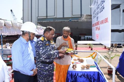 03 मई 24 को गोवा शिपयार्ड लिमिटेड में पहले अगली पीढ़ी के ऑफशोर पैट्रोल पोत (पूर्व-जी.एस.एल.) की कील लेइंग (पोत की निर्माण प्रक्रिया)