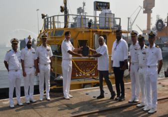 Delivery of Missile Cum Ammunition (MCA) Barge, LSAM 9 (Yard 77) third Barge of 08 X Missile Cum Ammunition (MCA) Barge Project on 22 Nov 23 at Naval Dockyard, Mumbai for INS Tunir