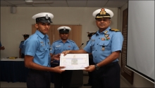 Five trainees from the Indian Navy and four from Indian Coast Guard, successfully completed SSR Flight Diver course and were awarded the Flight Diver Badges at a Passing Out Ceremony held on 10 August 2018. The event marked the culmination of 49 weeks of intensive training that comprised both theoretical and practical training on various equipment and flying experience on Chetak aircraft. Ashwini Kumar, SSR(FD) and Ankit Kumar, SSR(FD) were adjudged first and second in the course and were awarded ‘Best Flight Diver Rolling Trophy’ and ‘Vijayan Memorial trophy’ (Best in Ground Subjects) respectively. The trainees will now proceed to various Naval Air Stations for Flight Diver duties.