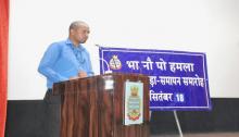 Hindi Pakhwada was conducted at INS Hamla from 14 to 28 September 2018, and comprised various competitions such as poem recitation, Hindi essay writing, Hindi typing, debate and noting writing. All naval personnel and defence civilians took part in the events. Commanding Officer, INS Hamla presented awards to the winners during the closing ceremony held on 28 September 2018. The Hindi Rolling Trophy was awarded to Commanders’ Office for displaying maximum utilisation of Rajbhasha in day to day official work. In addition, the 13th edition of Hamla Hindi Patrika 'Jyoti' was also released during the event.