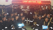 Camp ‘Abhyaas’ was conducted at INS Shivaji for trainee sailors of Direct Entry Engineering Mechanic (DEME) Course, from 30 October to 01 November 2018. 343 naval personnel participated in the camp, which included 313 trainees from DEME Course, 15 Assistant Divisional Officers from Marine Engineering Specialisation Course, 12 Assistant Divisional Chiefs from CHERA ‘Q’ course and two sailors from the Training Team. The aim of the camp was to develop stamina, fortitude, determination and endurance and to inculcate a sense of discipline, spirit of adventure and also esprit-de-corps among the trainees. The major activities conducted during the camp include, approach route march from INS Shivaji to the Camp Site, night navigation exercise, mini josh run, josh run, tent pitching and troop games. Korigad Division emerged as Camp Champion, while Sudhagad Division was adjudged Runners-up. Rahul Kumar and Abhishek Sharma, both from DEME course, were adjudged the ‘Best Camp Trainee’ and the ‘Most Spirited Trainee’ respectively.