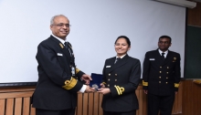 31 officers of the Indian Navy graduated from IIT Delhi with a Post Graduate Diploma (Naval Construction: Warship & Submarine Design) from Naval Construction Wing on 06 December 2018. The valedictory ceremony was held at IIT Delhi. Director General Naval Design (Surface Ship Group) was the Chief Guest for the ceremony and felicitated the graduating officers. Lieutenant CV Sandeep was awarded Shri Paramanandan Gold Medal for best academic performance in the DIIT Course. He was also awarded the Captain Mohan Ram book prize for securing the highest Cumulative Grade Point Average and Captain Mohan Ram Medal for the best Minor Project. Lieutenant Anand S Nair and Lieutenant Nishta Unniyal were awarded Commodore Garg Silver Medal for best Design Project.