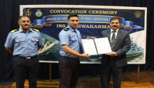 Vice Chancellor Andhra University awarded BSc Degree in ‘Naval Shipbuilding and Hull Maintenance’ to 46 Hull Artificer (HA) Sailors during a Convocation Ceremony held at INS Vishwakarma on 18 May 2019. The HA sailors were awarded the Degree for successful completion of Chief HA 'Q' Course during the academic years 2017-19, based on a MoU signed between the Indian Navy and Andhra University in Dec 2017.